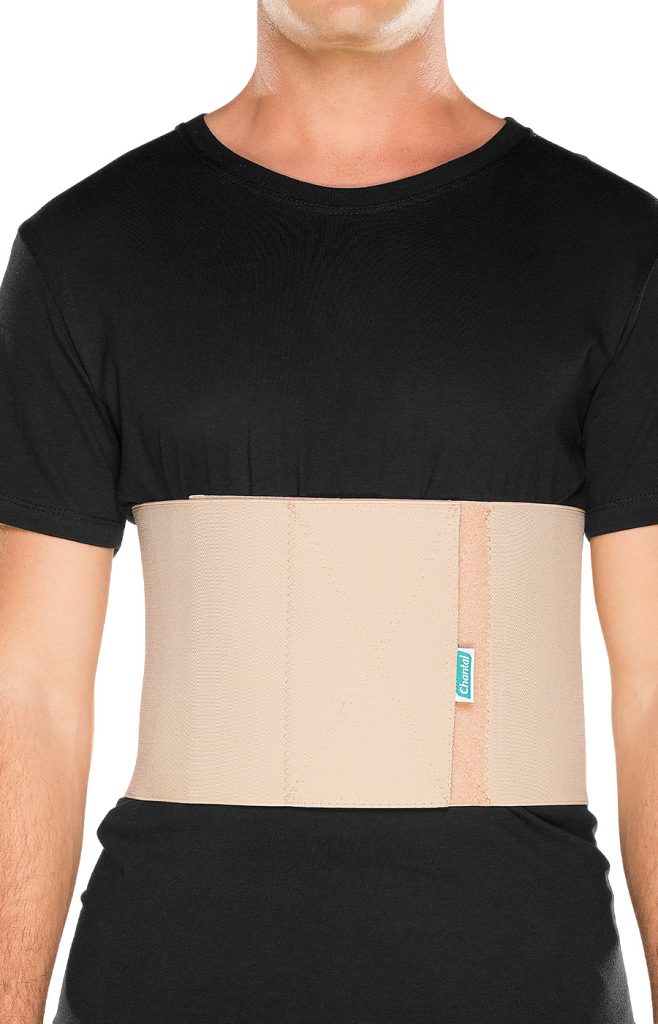 Indicada para tratamento de contusões musculares na região torácica e fraturas de costela.