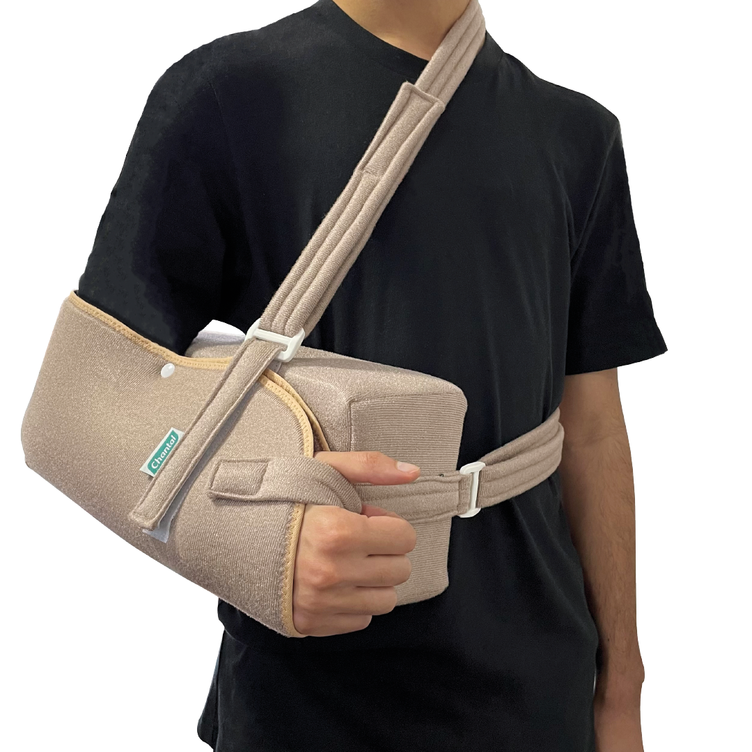 Desenvolvida em espuma com tecido atoalhado, alça larga e acolchoada, suporte de apoio (coxim) acolchoado a Tipoia Funcional garante uma estabilização e manutenção no ombro em abdução de maneira precisa e eficiente promovendo ao usuário segurança, sustentação e conforto. Possui cinto e Velcro ® fixado no suporte de apoio (coxim) e Tipoia para favorecer o fechamento e manter o posicionamento adequado, além de passantes metálicos que não enferrujam com o suor e umidade. Uso bilateral. Oferece ao usuário faixa adicional para polegar com intuito garantir um maior conforto e posicionamento adequado durante o uso. Produto lavável.